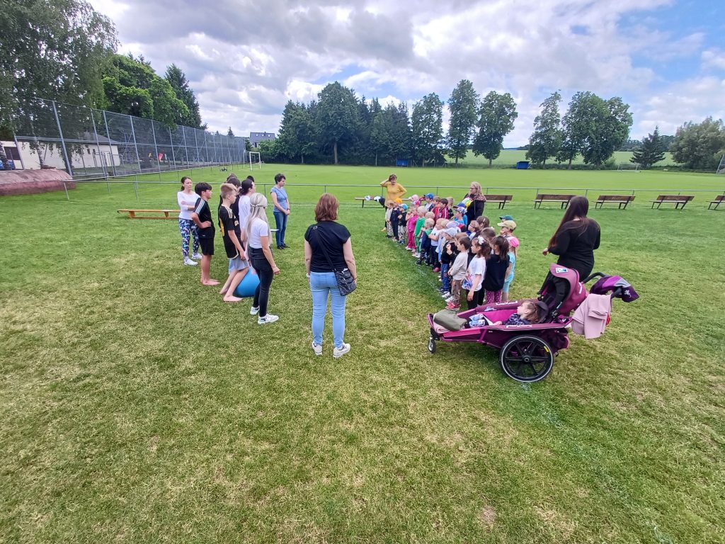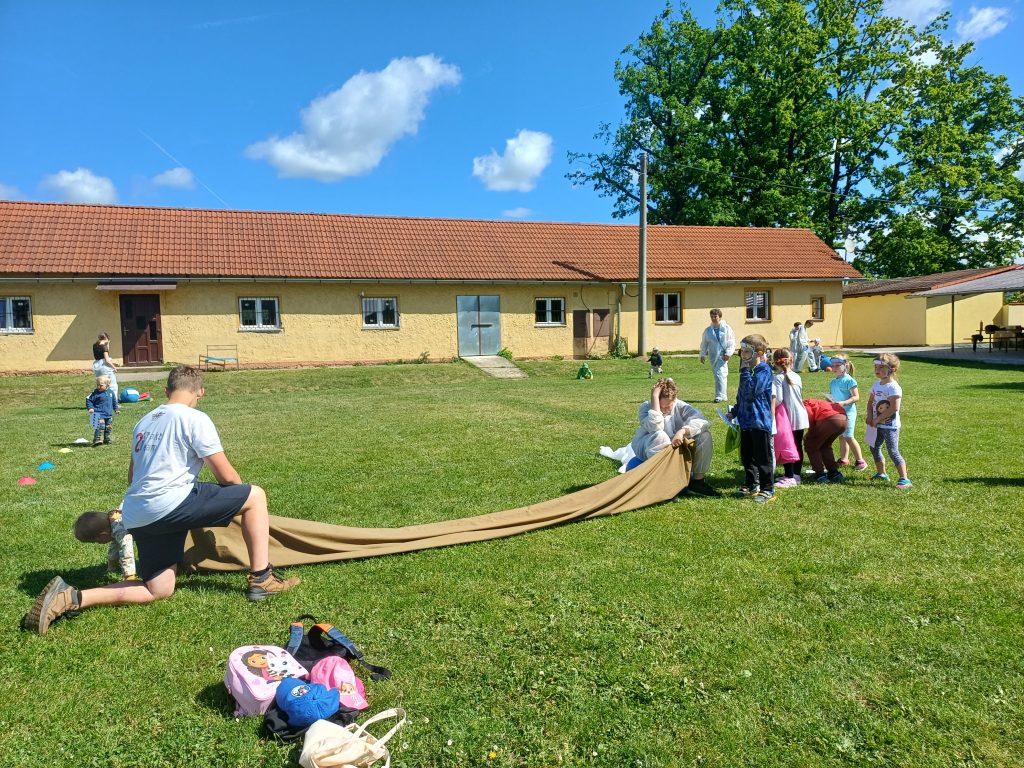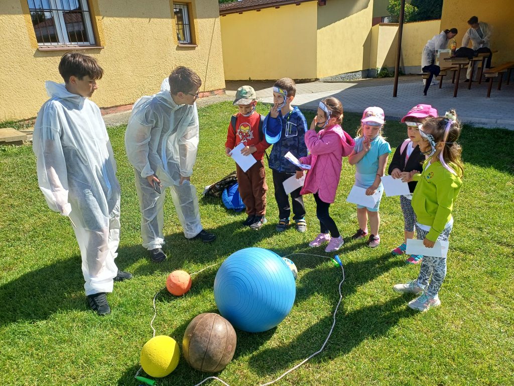 I letos, ke dni dětí, si pro nás žáci 8. třídy ZŠ připravili zábavné dopoledne plné her. Společně jsme se vypravili do vesmíru. Počasí bylo krásné takže se let vydařil, všechny to moc bavilo a nakonec byla i odměna. Děkujeme paní učitelce, paní asistentce a žákům za skvělý den.