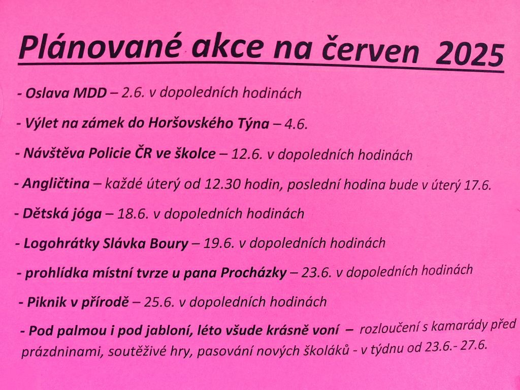 Plánované akce na červen 2025