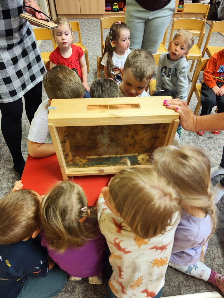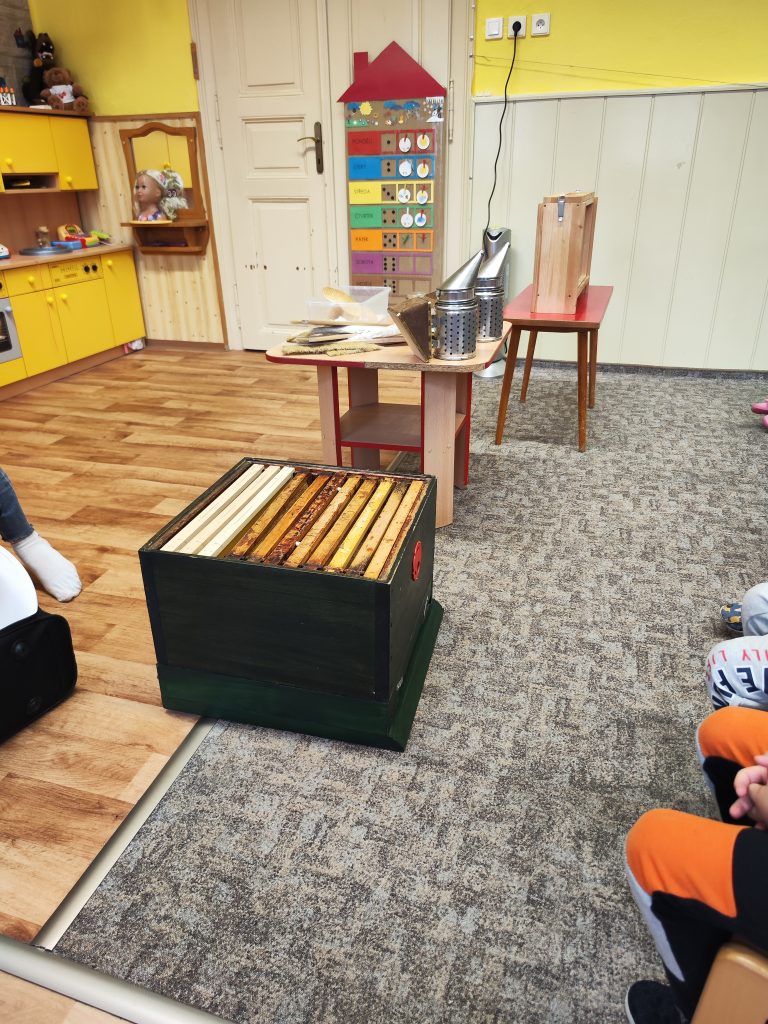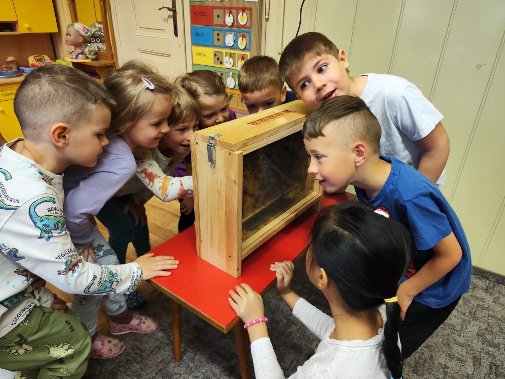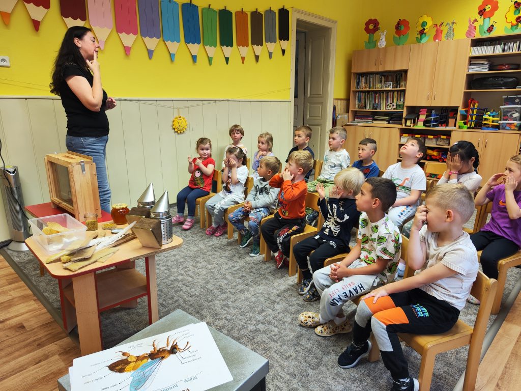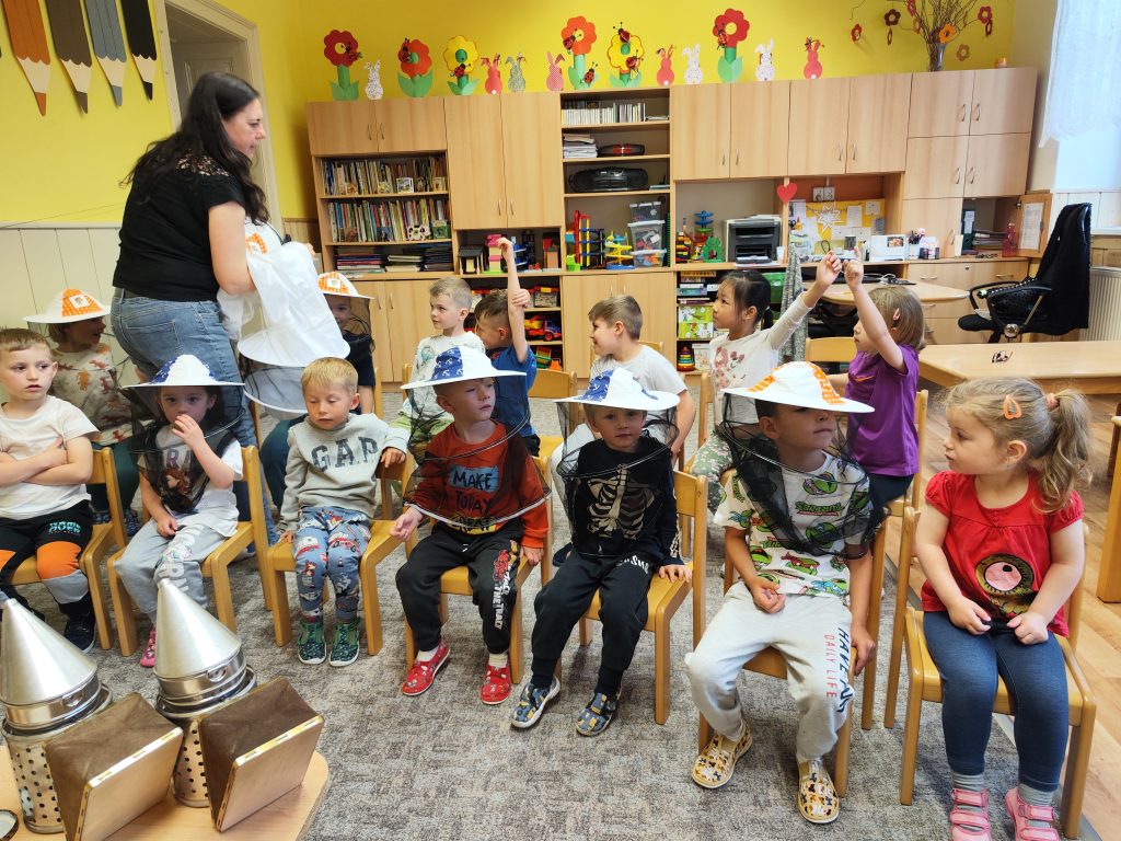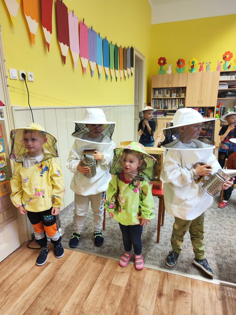 V pátek, 16. května, jsme přivítali v naší školce paní včelařku, která k nám přicestovala až z dalekého Včelařství pod Buchlovem. Připravila si pro nás velmi zajímavou přednášku zaměřenou na svět včel. Děti si vyzkoušely veselé včelařské oblečení a opravdové pomůcky včelaře, ochutnaly med i lahodný a velmi zdravý rouskový pyl. Úžasná a pro děti velmi poutavá byla podívaná na opravdové včely v proskleném úlu. Někteří si je takto zblízka v roji mohli prohlédnout a poslechnout poprvé v životě. Na památku a pro štěstí dostaly od paní včelařky voskové včeličky. Bylo to krásné a velmi zajímavé povídání, ze kterého jsme si odnesli i spoustu nových a zajímavých informací.