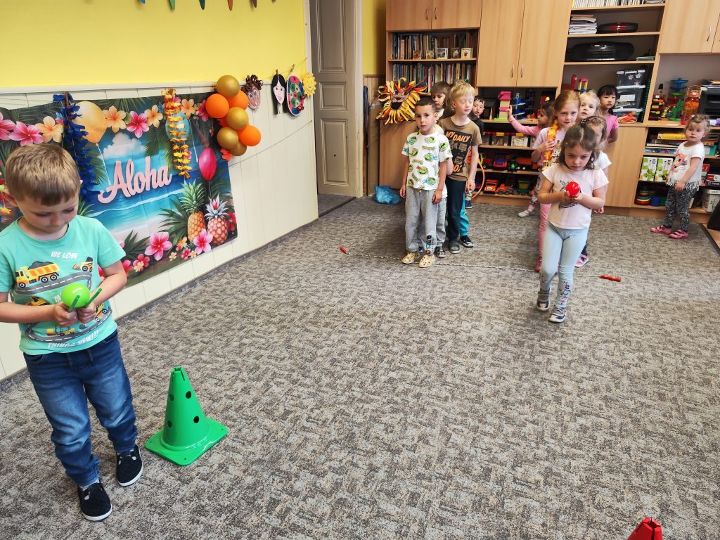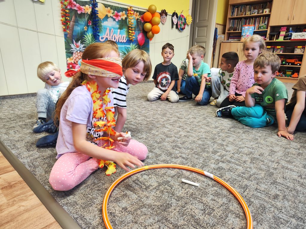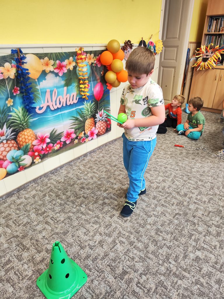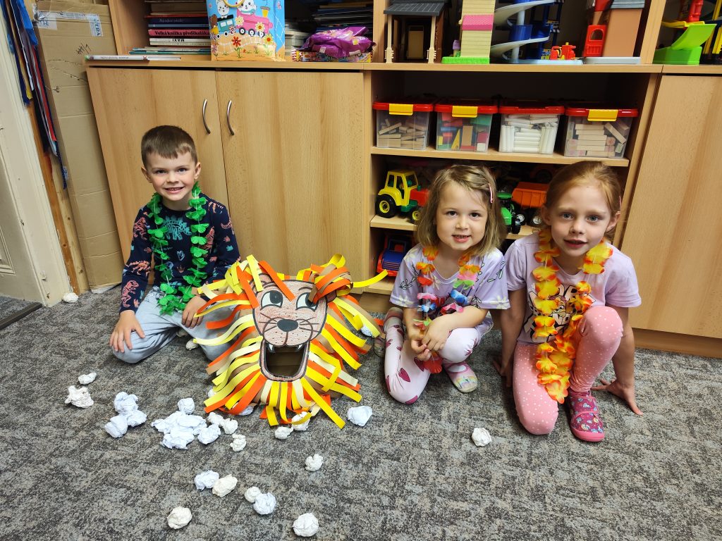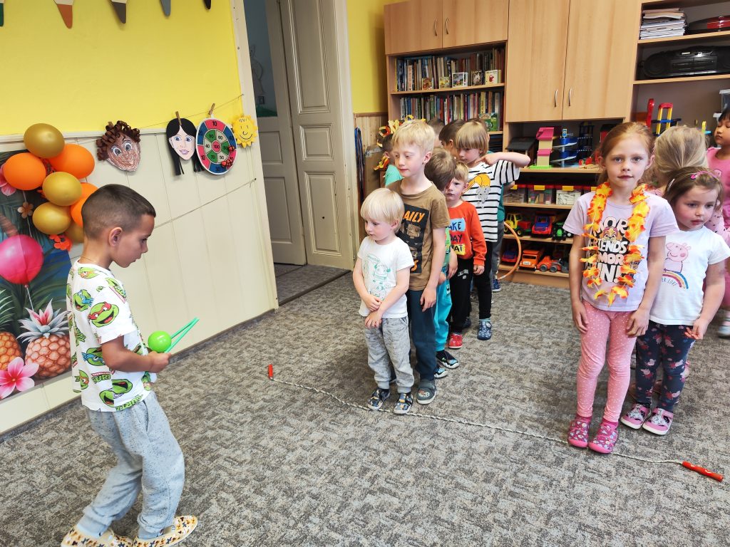 Letošní mezinárodní den dětí jsme oslavili tématem cesty kolem světa. V Africe jsme krmili hladové lvy, na Antarktidě jsme lovili ryby pro hladové děti, v Asii jsme nosili míčky na hůlkách, v Americe jsme si hráli na Sochy svobody a v Evropě jsme si zahráli Českou bránu. Odměnou za bujaré soutěžení byly dobroty a na památku jsme si z naší cesty kolem světa odnesli domů hawajské věnce.