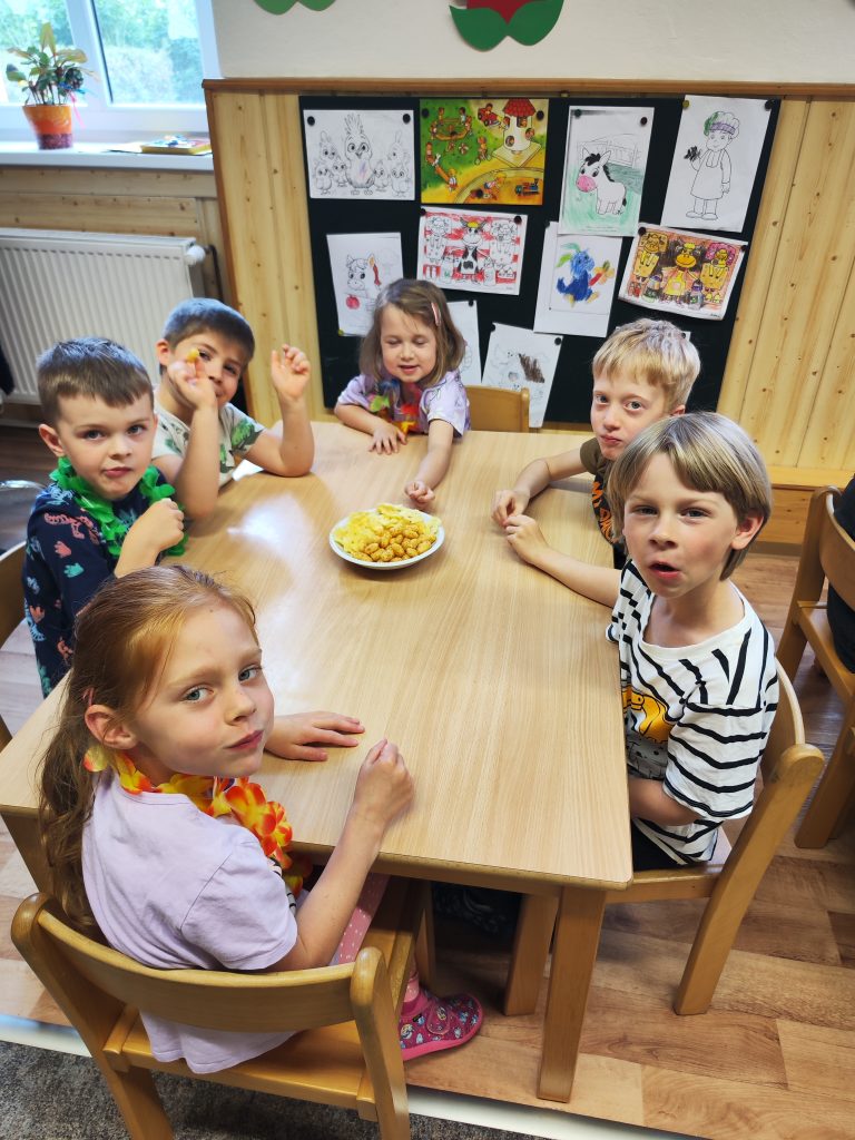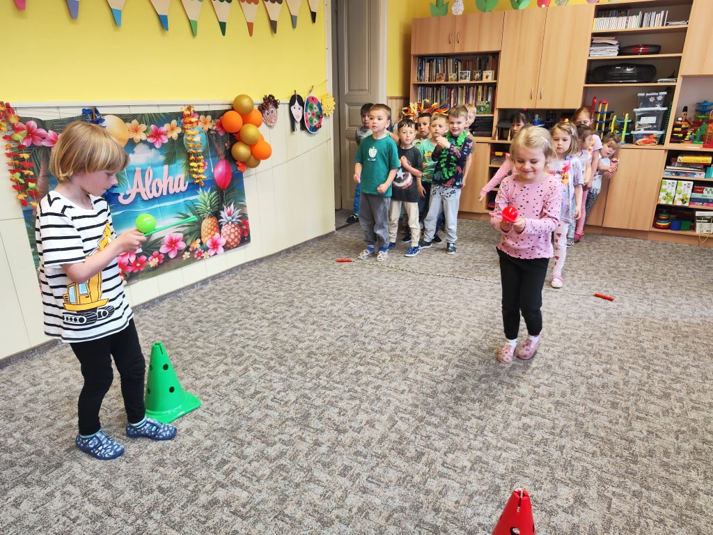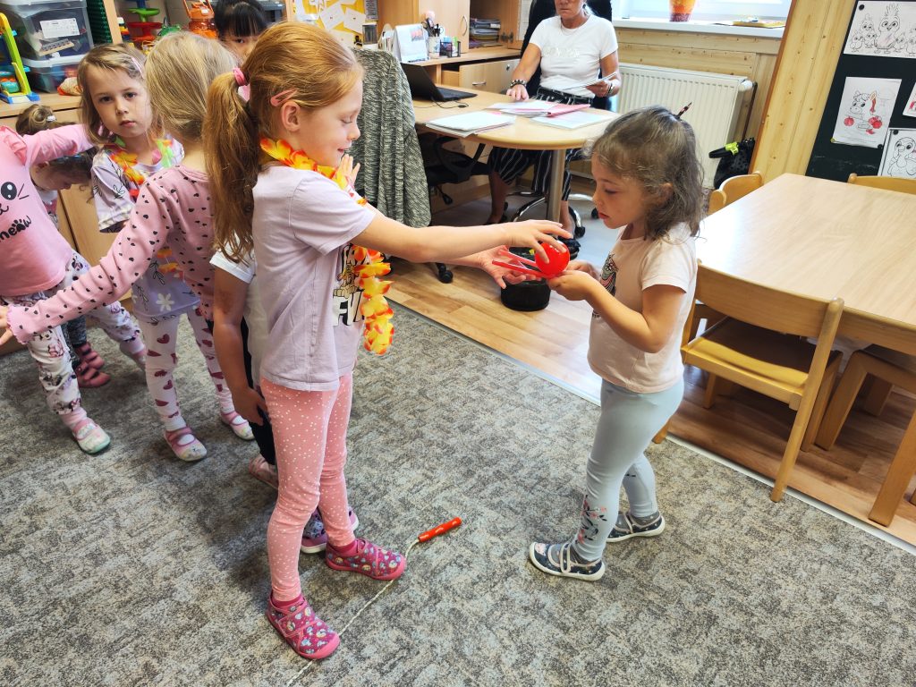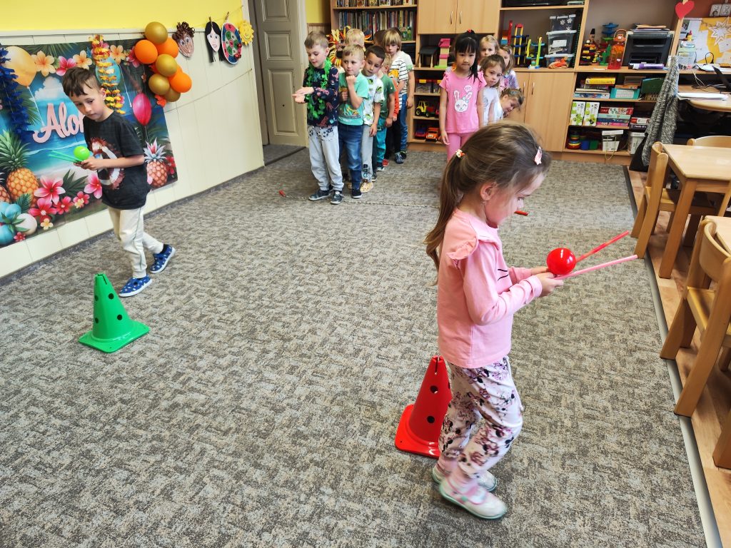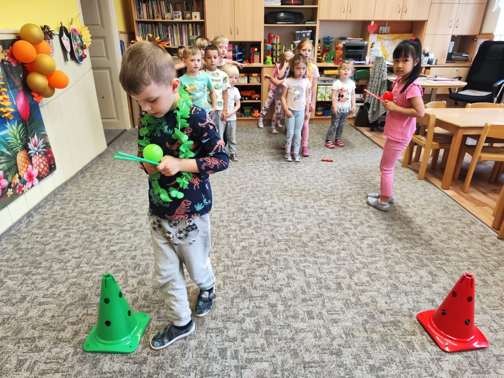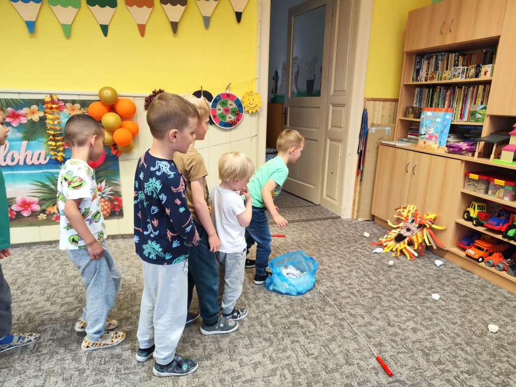 Letošní mezinárodní den dětí jsme oslavili tématem cesty kolem světa. V Africe jsme krmili hladové lvy, na Antarktidě jsme lovili ryby pro hladové děti, v Asii jsme nosili míčky na hůlkách, v Americe jsme si hráli na Sochy svobody a v Evropě jsme si zahráli Českou bránu. Odměnou za bujaré soutěžení byly dobroty a na památku jsme si z naší cesty kolem světa odnesli domů hawajské věnce.