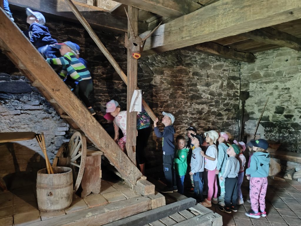 V pondělí 23. června jsme se vydali na nedalekou návštěvu, kdy jsme navštívili místní tvrz pana Procházky sousedící s naší školkou. Tvrz ve Lštění je nejlépe zachovanou věžovou tvrzí v Plzeňském kraji. Jedná se o původní sídlo Bohuchvalů z Hrádku z 15. stol., později ve vlastnictví Czerninů a města Domažlice užívána jako sýpka. Měli jsme možnost prohlédnout si zachovaný unikátní původní interiér s několikero schodišti a s okny s kamennými sedátky ve 4. patře, na kterých tehdejší obyvatelky seděli a pilně se věnovali vyšívání rodinných erbů. Kompaktně dochované zdivo věže obsahuje i výjimečně zachované dřevěné konstrukce jednotlivých pater i pozdně gotický dřevěný portál vstupu. Tvrz je po rozsáhlé rekonstrukci, která probíhala v letech 2002–2005 na náklady majitele památkového objektu a za podpory Plzeňského kraje.
