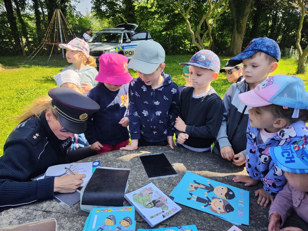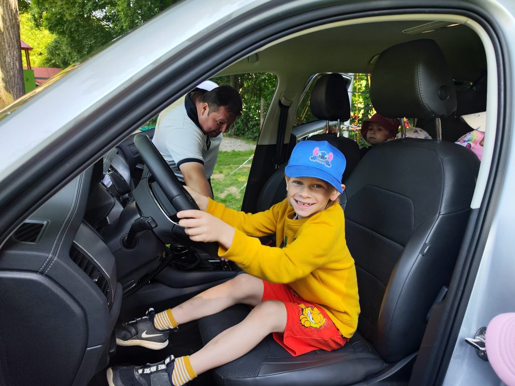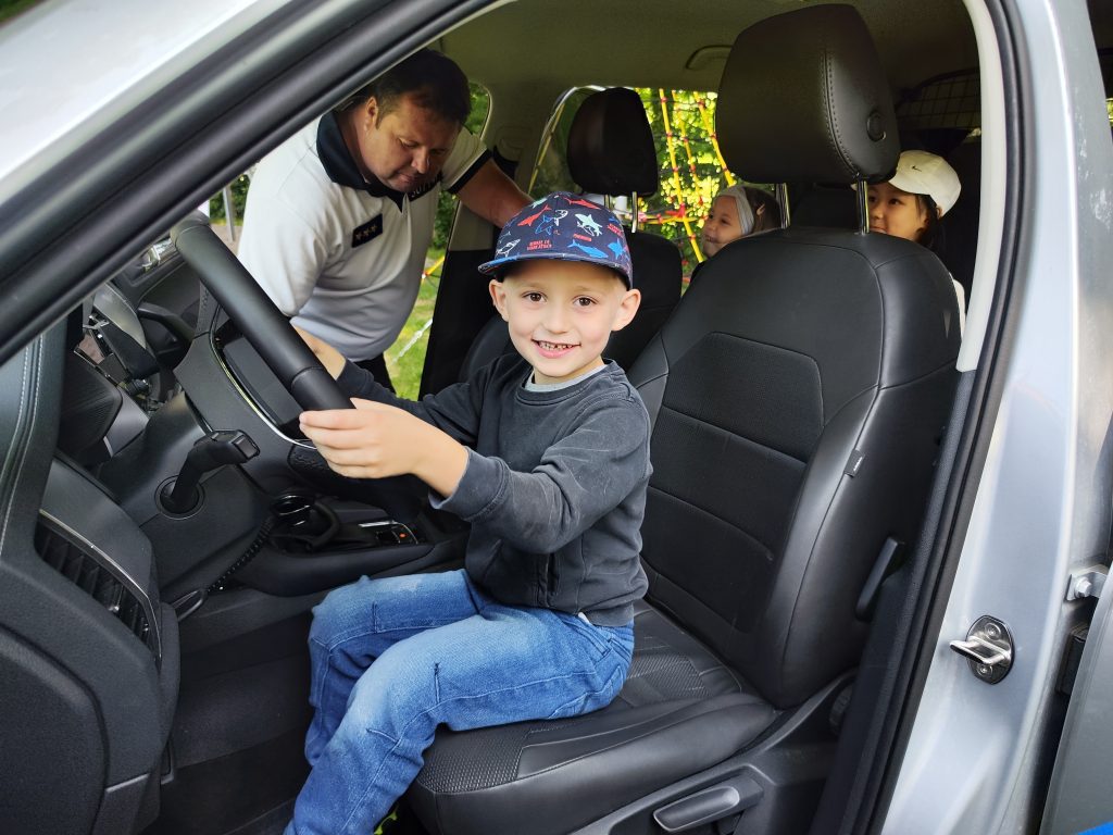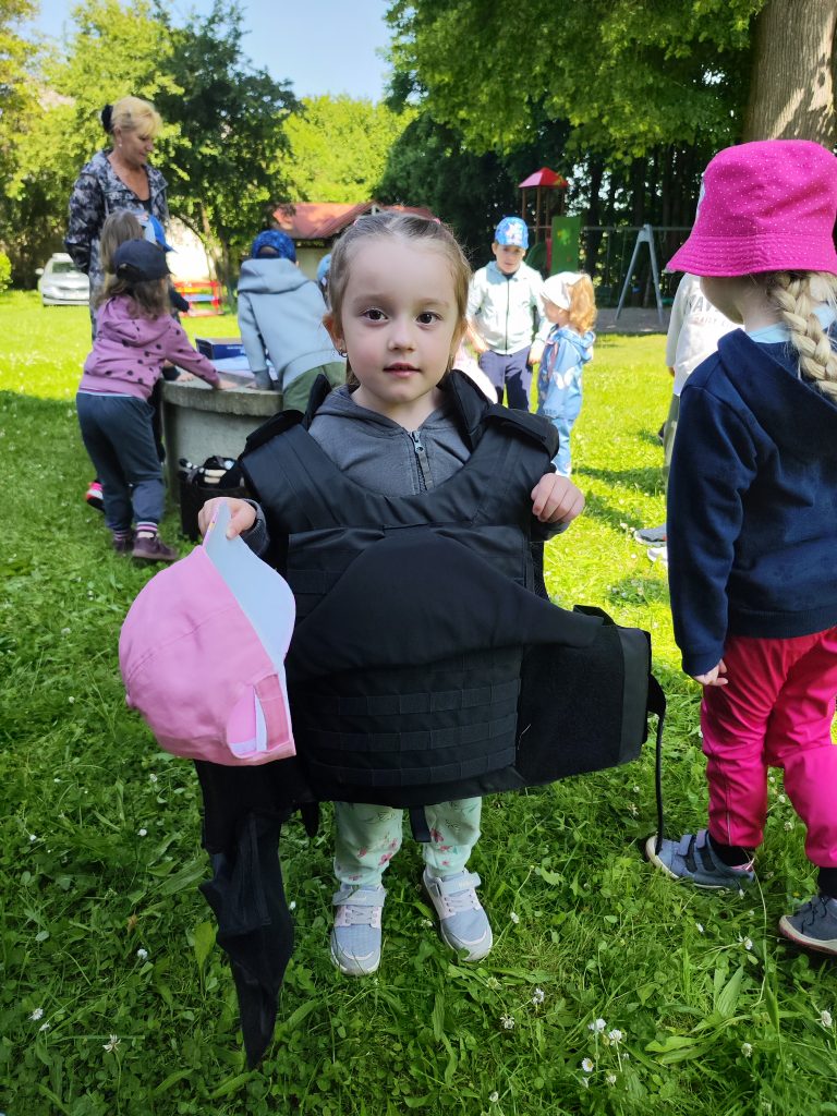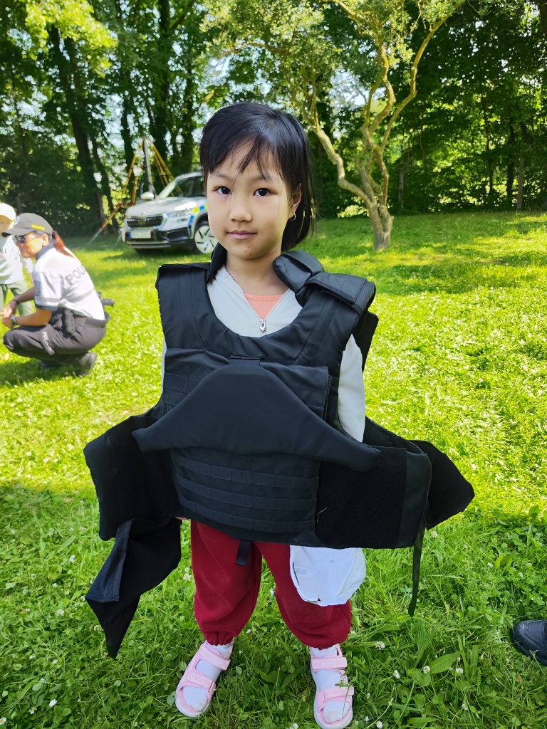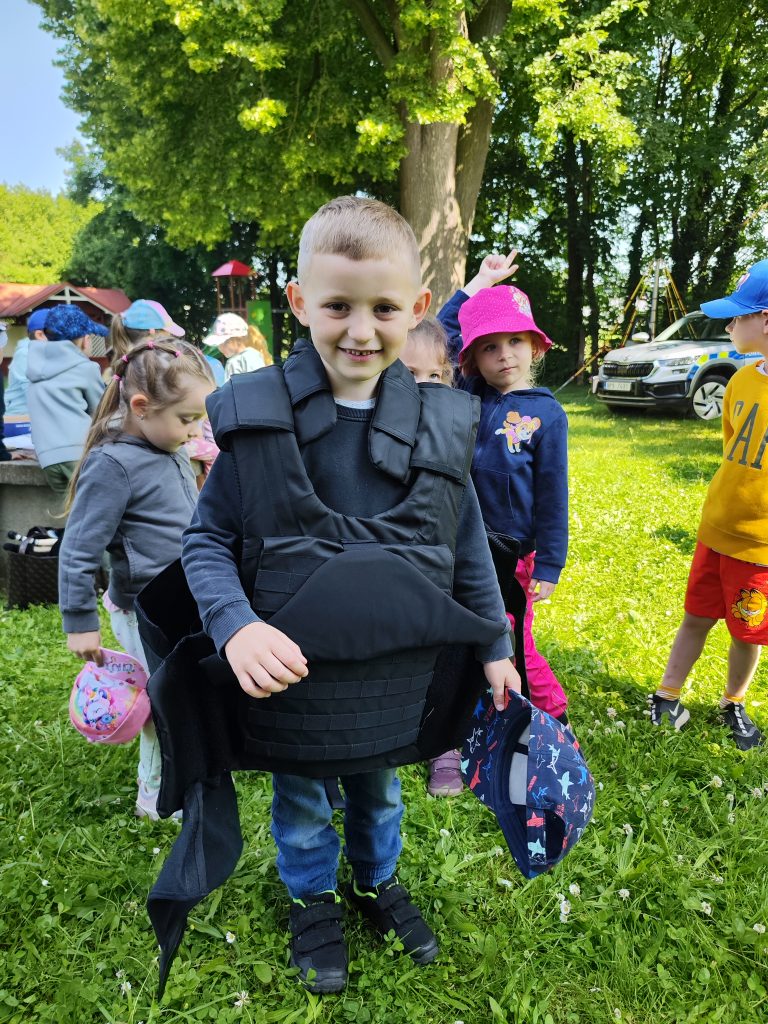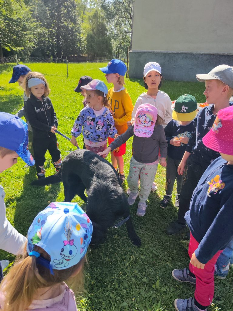 Ve čtvrtek 12. června jsme v naší školce přivítali policejní návštěvu. Páni policisti a paní policistky s sebou přivezli také své vycvičené pejsky, kteří nám předvedli hru s míčkem, přetahování i vyhledávání předmětů. Za odměnu si pejsci pochutnali na piškotech, které jsme jim všichni donesli a s radostí je nakrmili. Prohlédli jsme si také policejní vozidlo a dokonce jsme mohli usednout za volant a na opravdové policisty si tak zahrát. Na památku jsme dostali spoustu upomínkových předmětů včetně památečního stromu s našimi otisky. Celé dopoledne jsme si náramně užili.