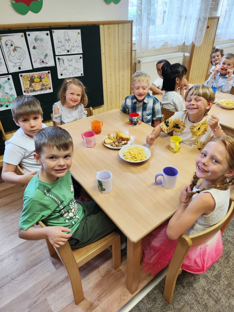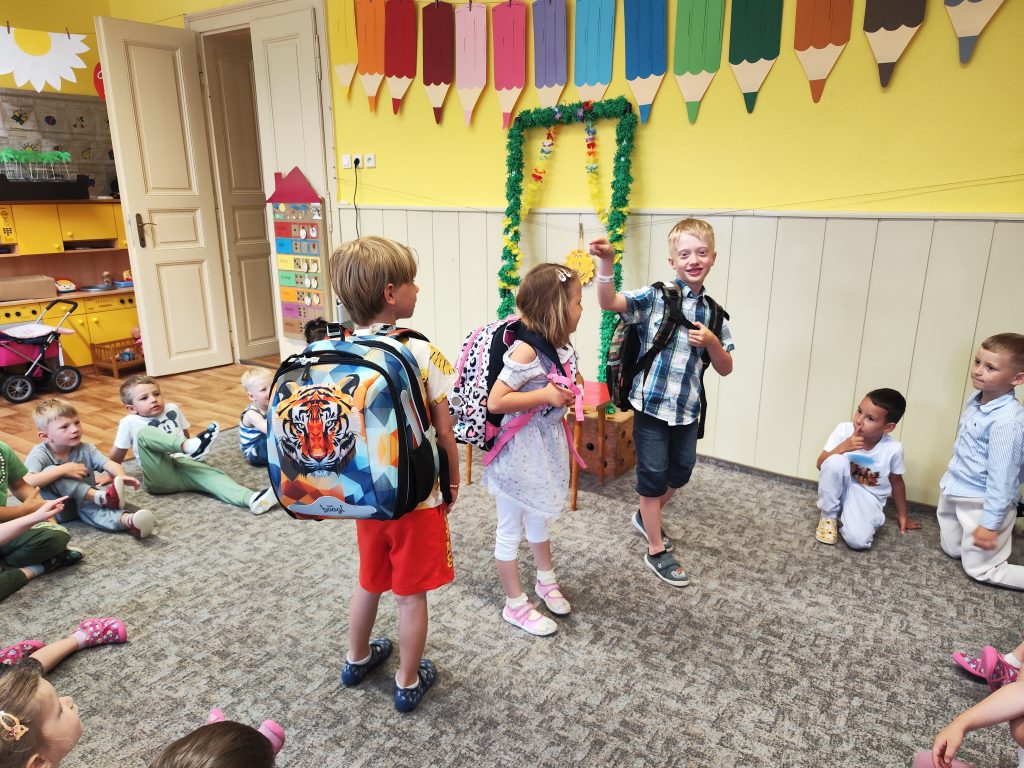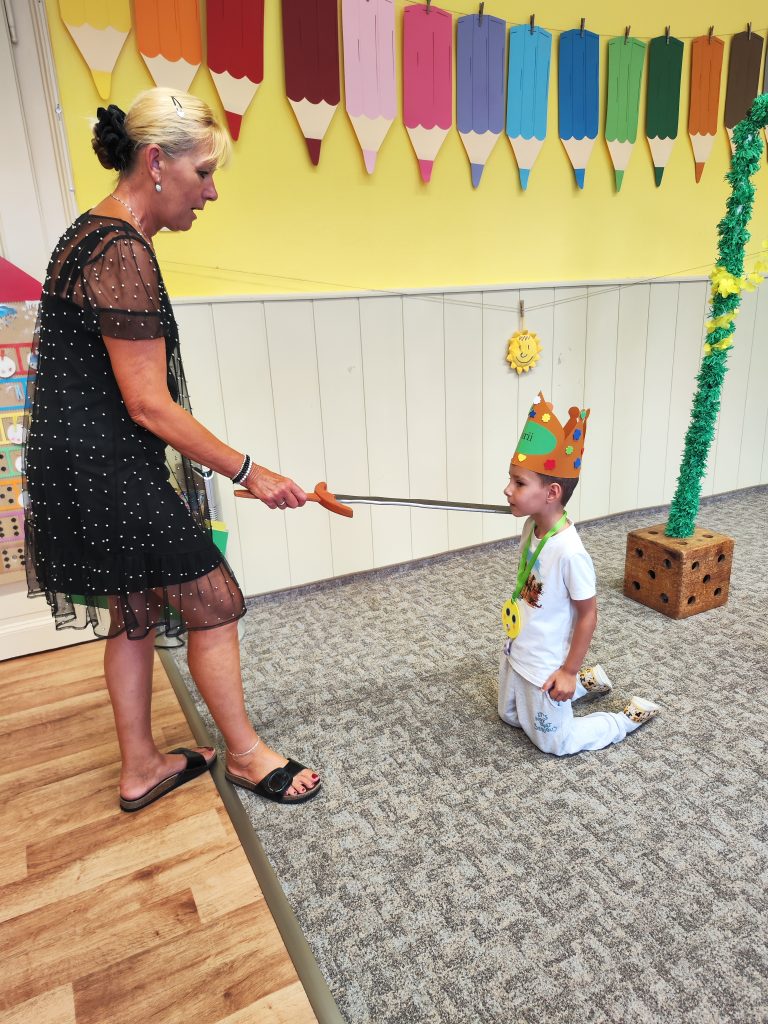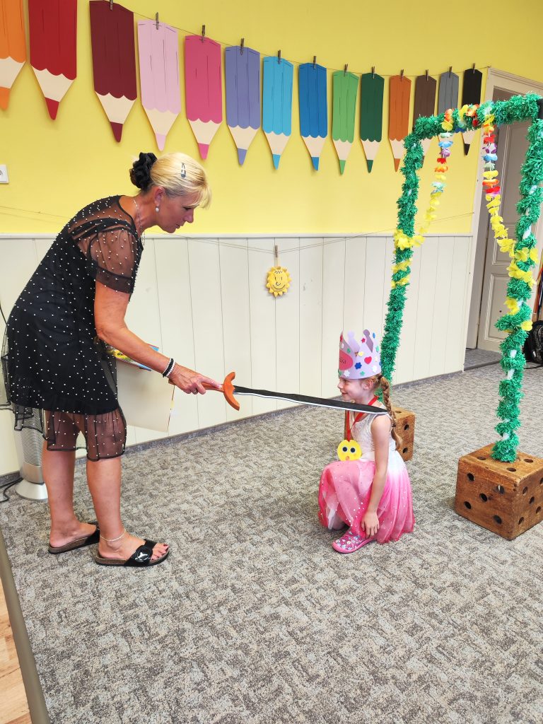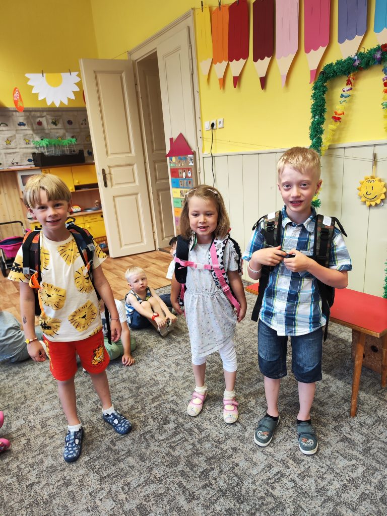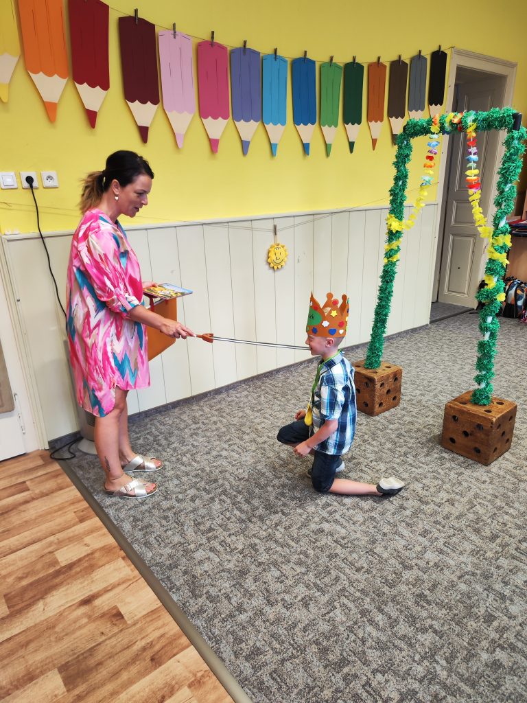 V pátek 27. června nastal čas rozloučit se s našimi velkými kamarády, kteří nás po prázdninách opustí a zasednout ve školách do velkých lavic. Všechny naše předškoláky jsme slavnostně pasovali na školáky, rozdali jim pamětní předměty a popřáli na cestu do velkého světa hodně štěstí. Ani ostatní děti ale nepřišli zkrátka a domů si odnášeli sladké dobroty a školková vysvědčení se svými celoročními výtvarnými pracemi. Na závěr jsme si uspořádali slavnostní hostinu a přípitkem si popřáli pohodové prázdniny bez boulí plné zážitků.