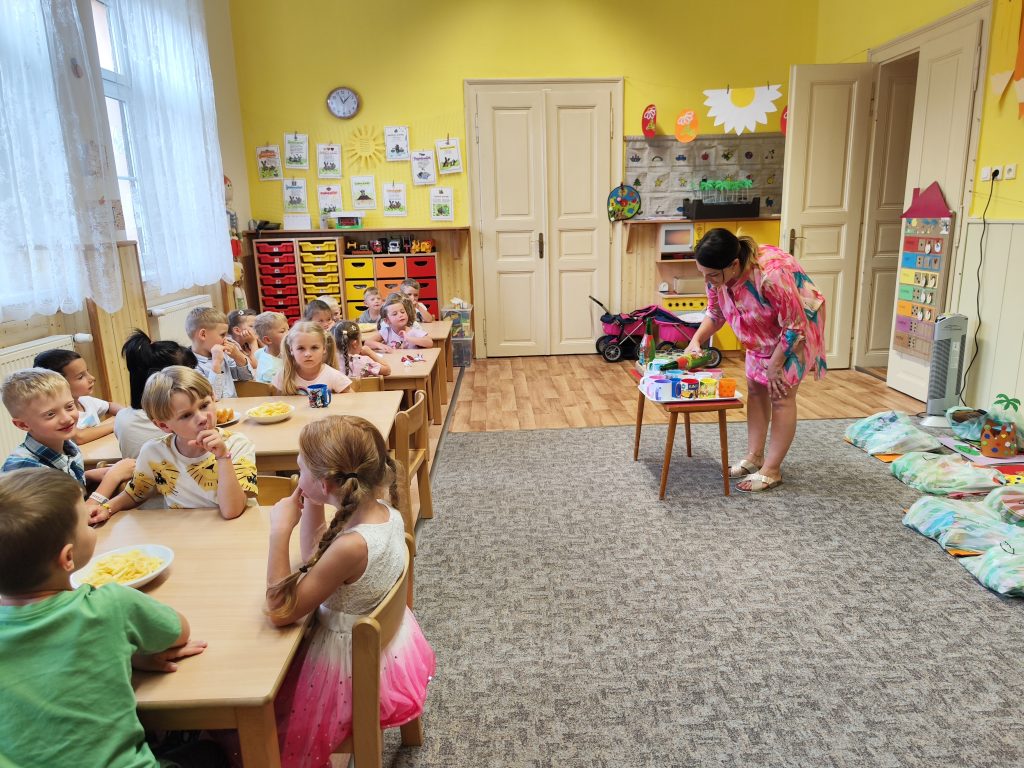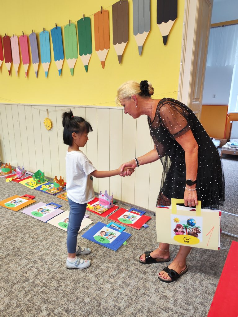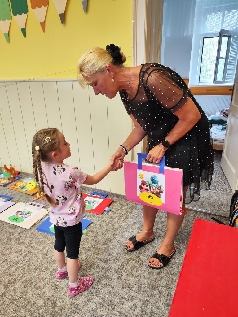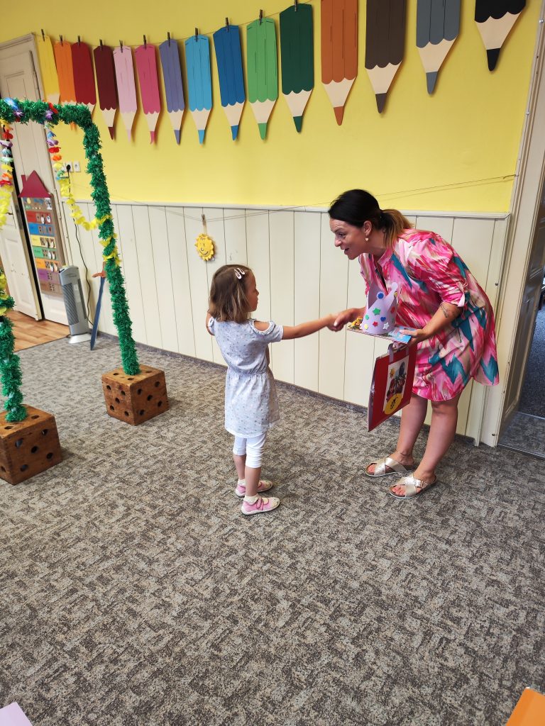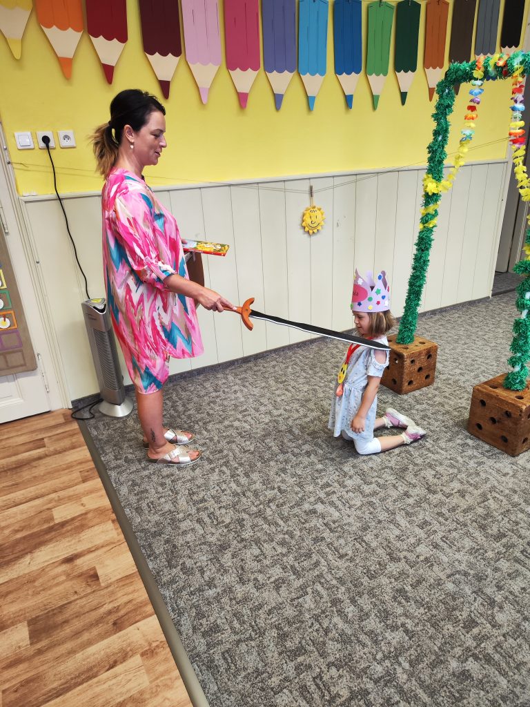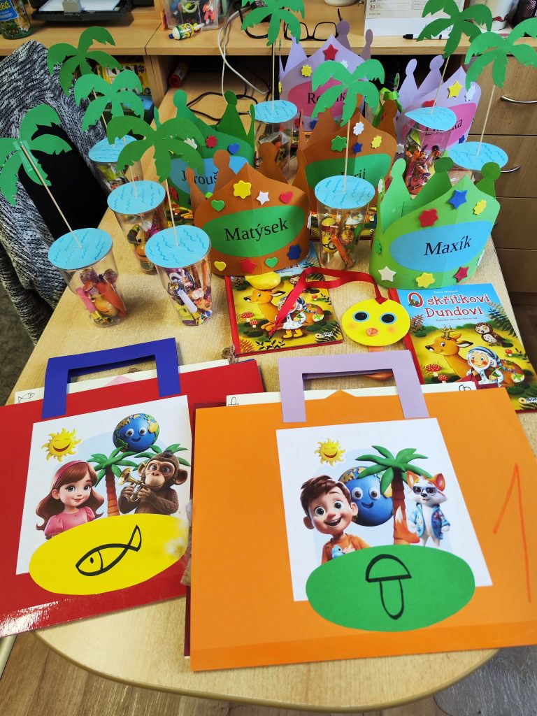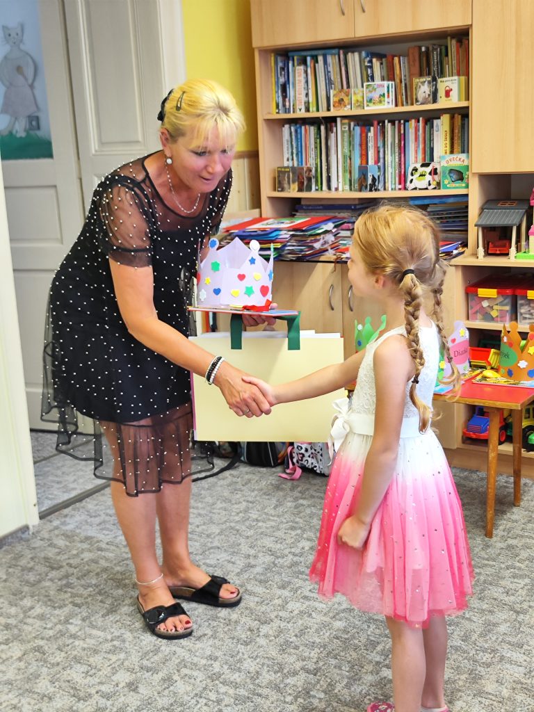 V pátek 27. června nastal čas rozloučit se s našimi velkými kamarády, kteří nás po prázdninách opustí a zasednout ve školách do velkých lavic. Všechny naše předškoláky jsme slavnostně pasovali na školáky, rozdali jim pamětní předměty a popřáli na cestu do velkého světa hodně štěstí. Ani ostatní děti ale nepřišli zkrátka a domů si odnášeli sladké dobroty a školková vysvědčení se svými celoročními výtvarnými pracemi. Na závěr jsme si uspořádali slavnostní hostinu a přípitkem si popřáli pohodové prázdniny bez boulí plné zážitků.