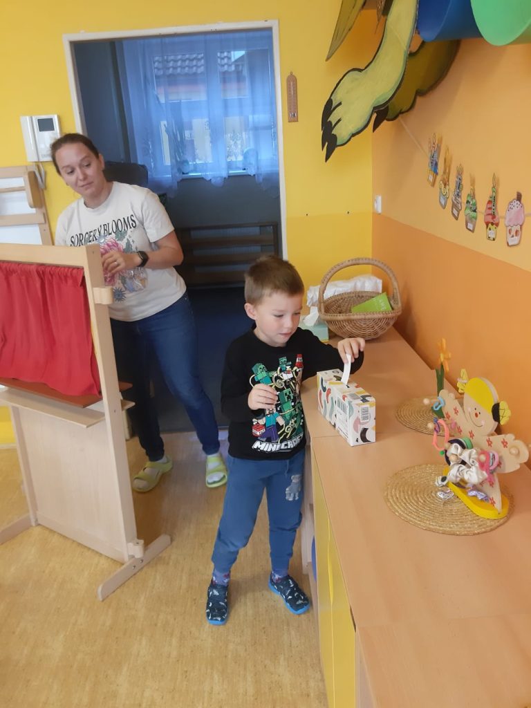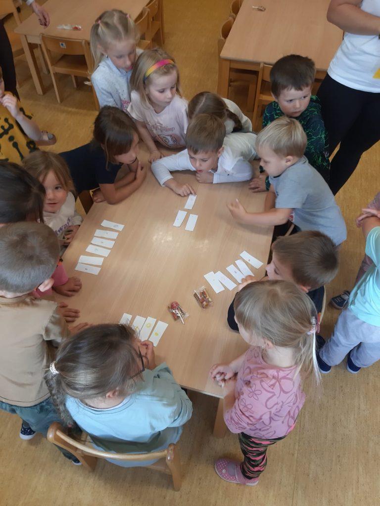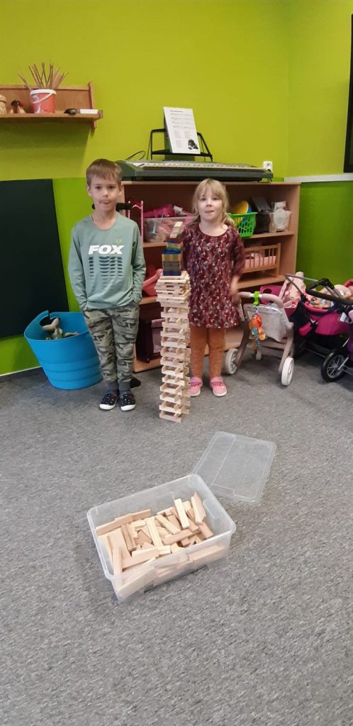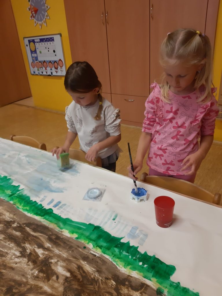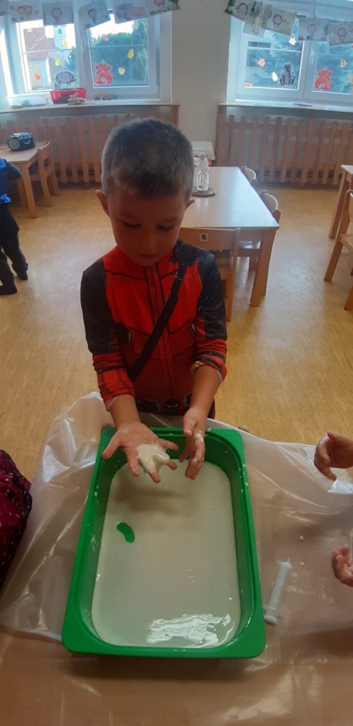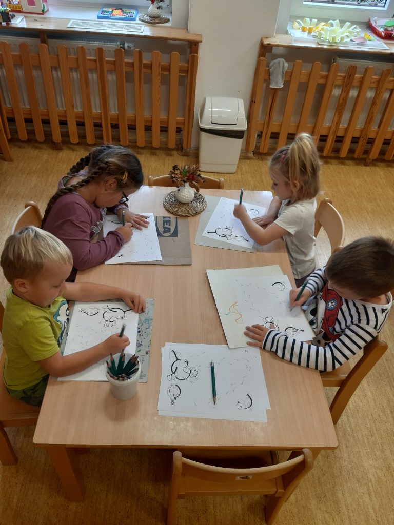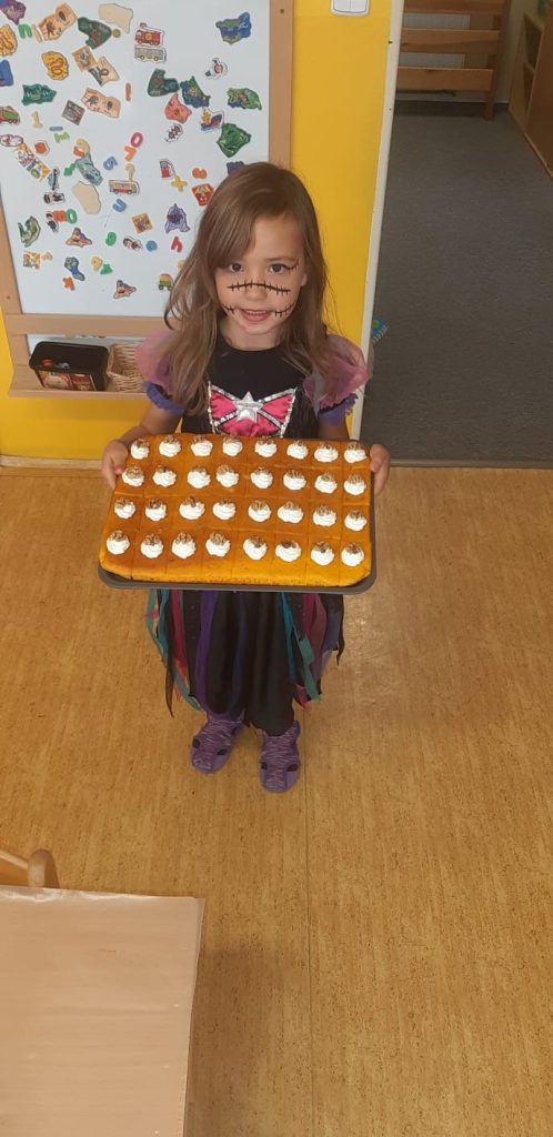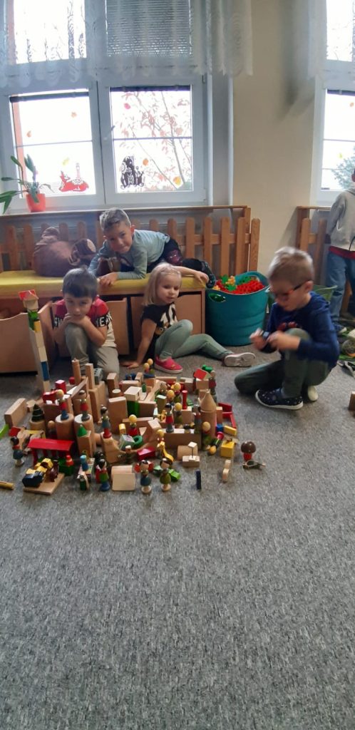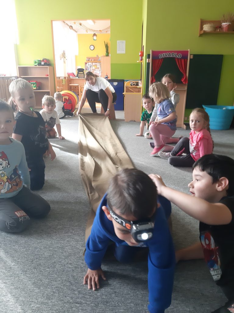 V říjnu jsme sklidili poslední brambory a vyzkoušeli si jak to probíhá u voleb. Seznámili jsme se s kalendářem, naučili se dny v týdnu a vysvětlili si, proč se střídá den a noc. Proběhla soutěž “ Dýňáček „, které se zůčastnili všichni. Krásné a originální výtvory jsme ocenili. S Matějem a Viki jsme oslavili narozeniny. Jako strašidýlka jsme si zařádili při hrách a soutěžích.