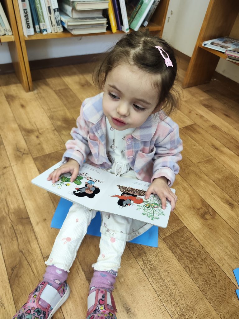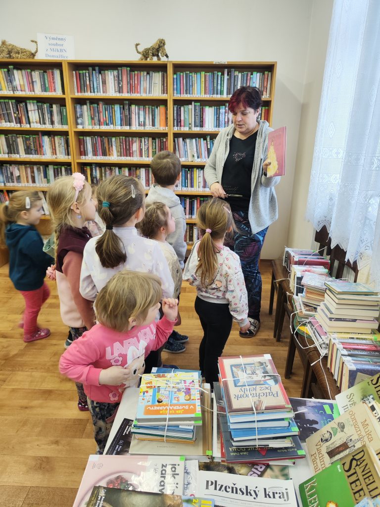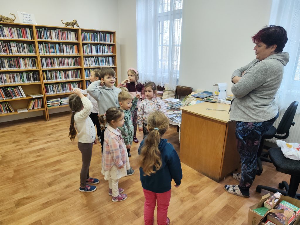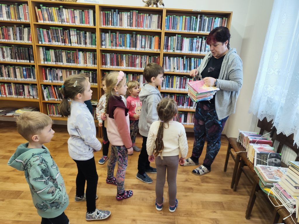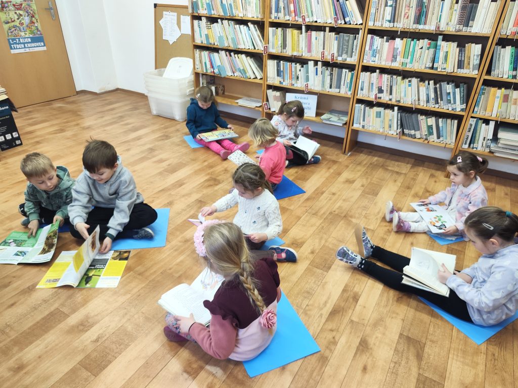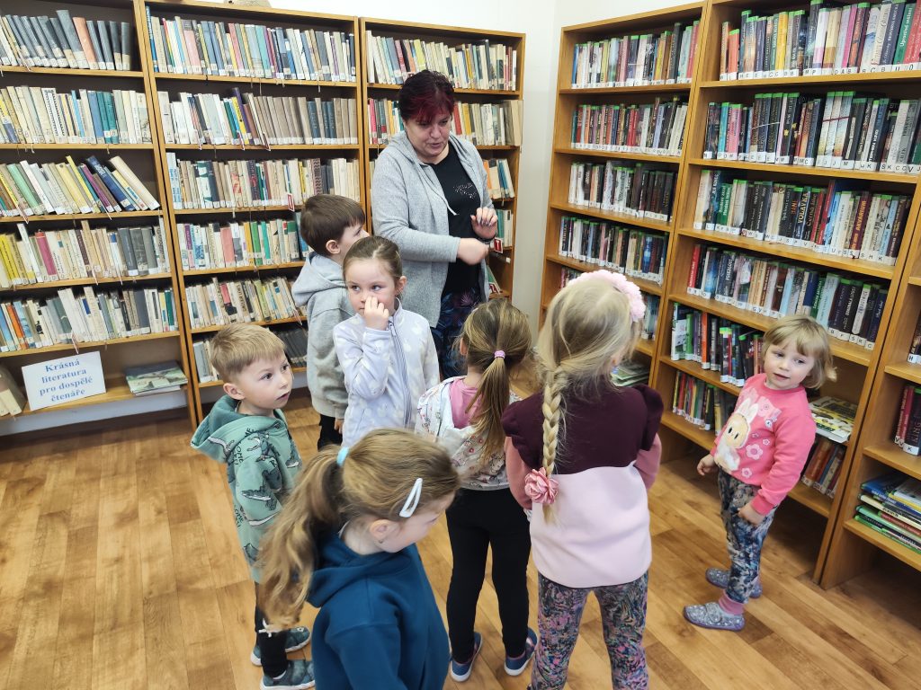 Mile nás přivítala naše paní knihovnice, teta Martina. Hned na začátku dětem vysvětlila, jak to v knihovně funguje – jak se ke knihám chováme, jak si je půjčujeme a proč je důležité o ně pečovat. Děti si prohlédly různé druhy knih – pohádkové, naučné i obrázkové. Povídali si o tom, co všechno se v knihách můžeme dozvědět a kam nás může příběh zavést.Poté měly děti prostor knihy si samy prohlížet, listovat jimi a sdílet své dojmy s kamarády. Návštěva byla pro děti velmi přínosná a inspirující. Odcházeli jsme plní zážitků a s chutí se do knih zase brzy ponořit. Děkujeme tetě Martině za milé přijetí a krásně připravený program. 📖✨